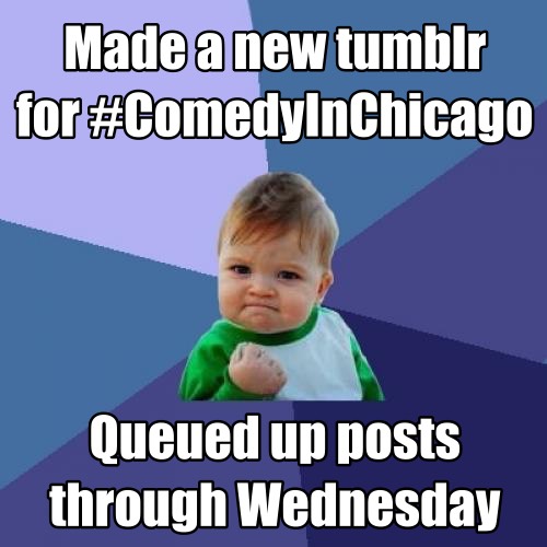 If you would like to promote a live comedy show in Chicago use the hashtag #ComedyInChicago on twitter, instagram or tumblr. This will help audience discover different venues and shows. Also, follow the tumblr at comedyinchicago.net.